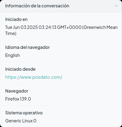 Paso 1. En tu panel, al abrir una conversación, encontrarás la sección "Información de la conversación". Haz clic en el **