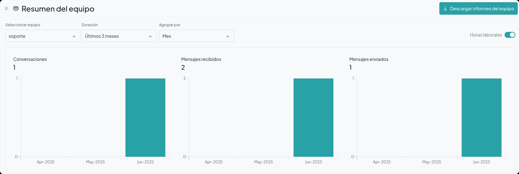 Descripción general de etiquetas: para ver qué etiquetas generan más conversaciones y las métricas asociadas.