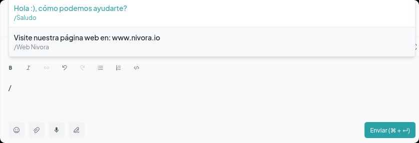 Paso 1. En la conversación donde necesite usar la respuesta predefinida, escriba **/**en el cuadro de respuesta. Esto mostrará la lista de todas las respuestas predefinidas de su cuenta.